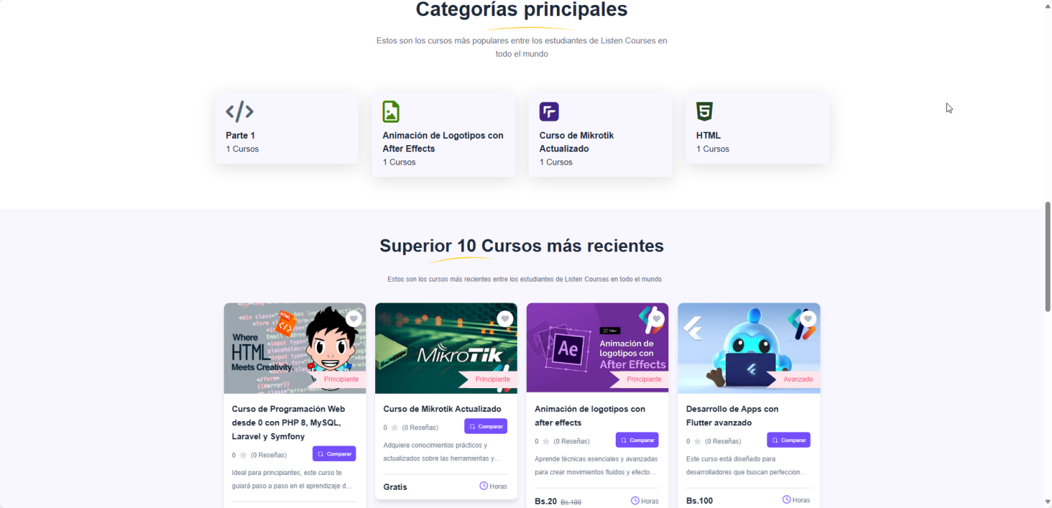 Categorización y filtros avanzados de cursos (por tema, nivel, duración, etc.).