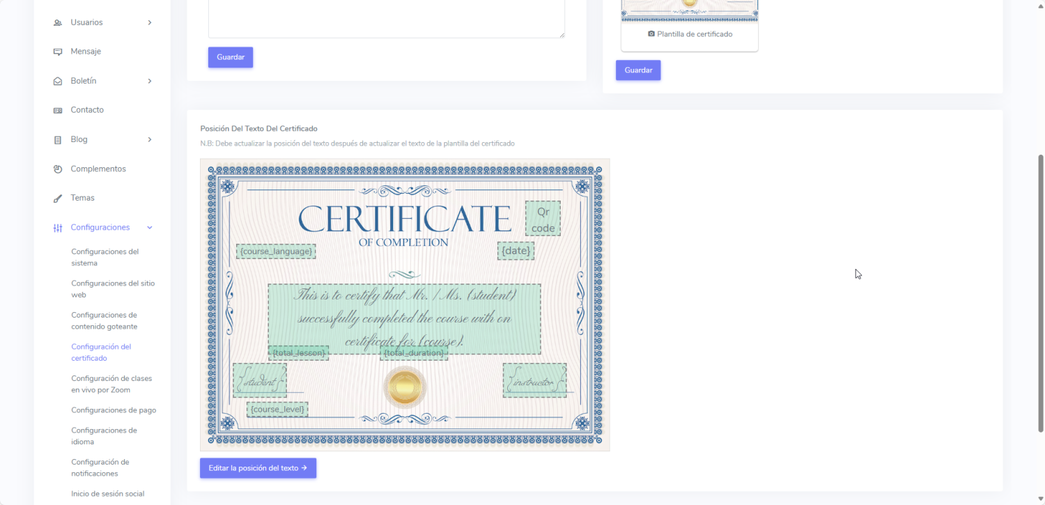 Creador de certificados: diseña certificados de marca con verificación tras finalizar el curso.